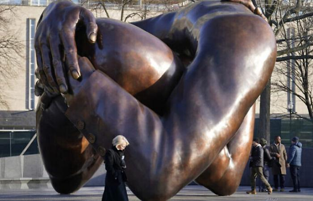 El monumento, que representa cuatro brazos entrelazados, se inspiró en una famosa fotografía de King y su esposa abrazándose cuando supo que había ganado el Premio Nobel de la Paz en 1964.